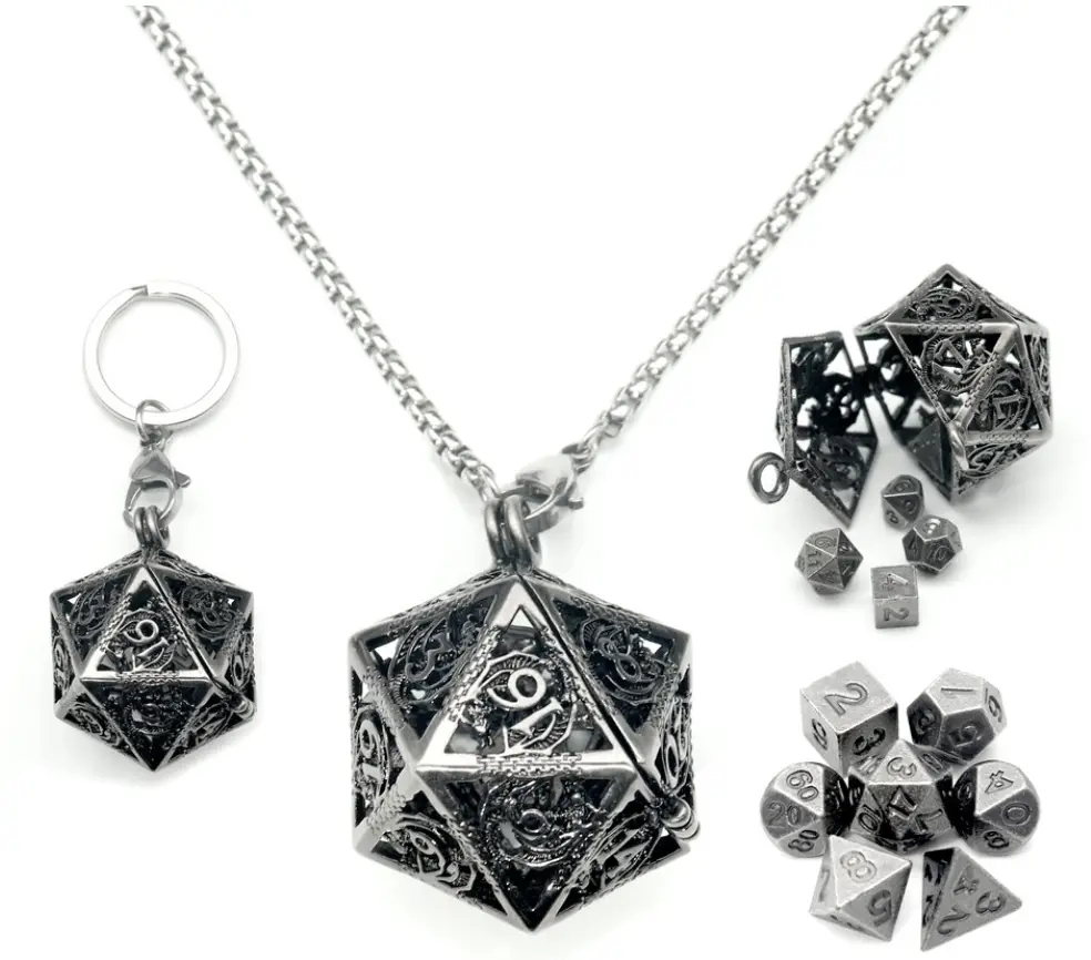 6mm Mini Metal DND Dice Set with Hollow D20 Dice Case and Necklace